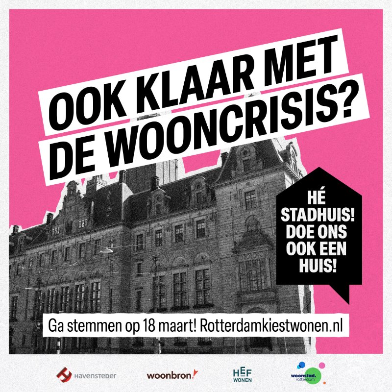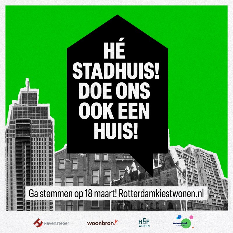 Woonstad,Havensteder, Hef Wonen en Woonbron roepen jou op om je uit te spreken voor een betaalbaar Rotterdam.